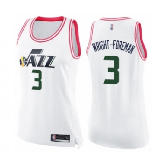 Women's Utah Jazz #3 Justin Wright-Foreman Swingman White Pink Fashion Basketball Jersey