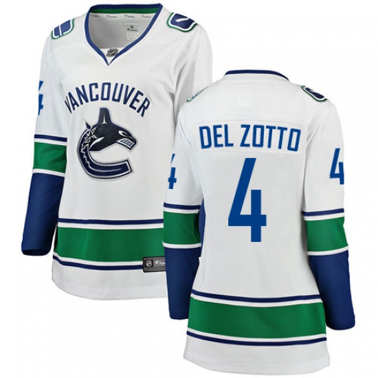 Home>NHL>Vancouver Canucks>Michael Del Zotto>Women's Vancouver Canucks #4 Michael Del Zotto Fanatics Branded White Away Breakaway NHL Jersey
