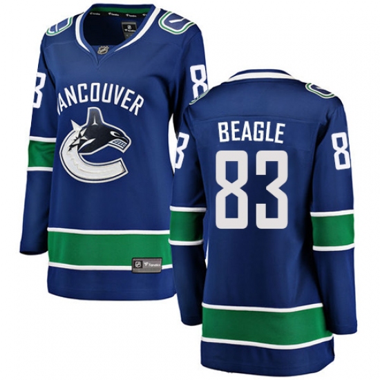 >Women's Vancouver Canucks #83 Jay Beagle Fanatics Branded Blue Home Breakaway NHL Jersey