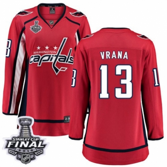 >Women's Washington Capitals #13 Jakub Vrana Fanatics Branded Red Home Breakaway 2018 Stanley Cup Final NHL Jersey