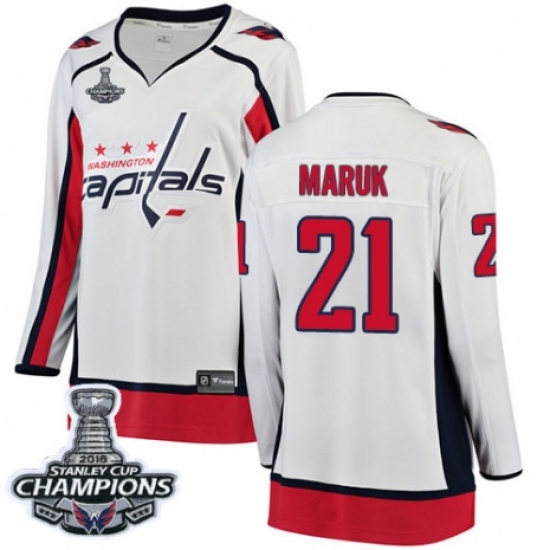 Women's Washington Capitals #21 Dennis Maruk Fanatics Branded White Away Breakaway 2018 Stanley Cup Final Champions NHL Jersey