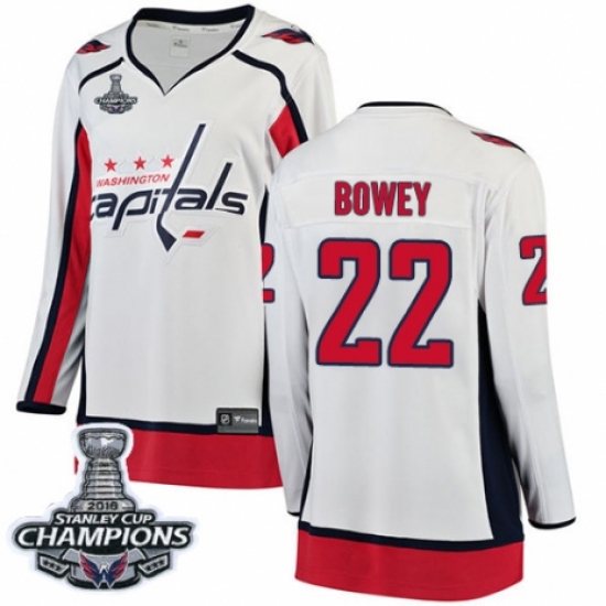Women's Washington Capitals #22 Madison Bowey Fanatics Branded White Away Breakaway 2018 Stanley Cup Final Champions NHL Jersey