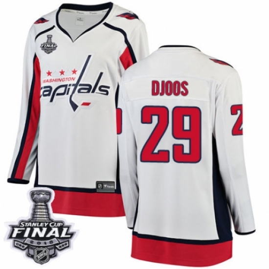 Women's Washington Capitals #29 Christian Djoos Fanatics Branded White Away Breakaway 2018 Stanley Cup Final NHL Jersey