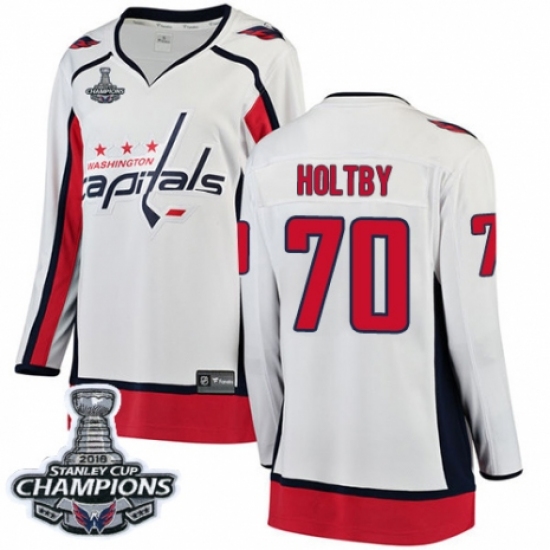 >Women's Washington Capitals #70 Braden Holtby Fanatics Branded White Away Breakaway 2018 Stanley Cup Final Champions NHL Jersey
