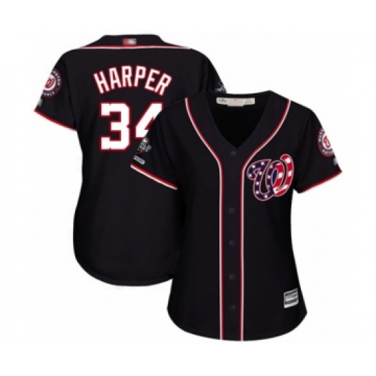 Women's Washington Nationals #34 Bryce Harper Authentic Navy Blue Alternate 2 Cool Base 2019 World Series Champions Baseball Jersey