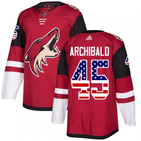 >Youth Adidas Arizona Coyotes #45 Josh Archibald Authentic Red USA Flag Fashion NHL Jersey