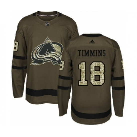 >Youth Adidas Colorado Avalanche #18 Conor Timmins Premier Green Salute to Service NHL Jersey