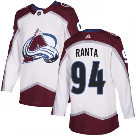 >Youth Adidas Colorado Avalanche #94 Sampo Ranta Authentic White Away NHL Jersey
