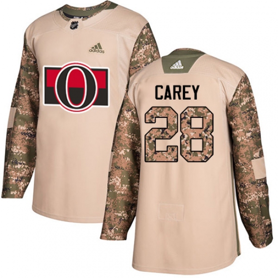 >Youth Adidas Ottawa Senators #28 Paul Carey Authentic Camo Veterans Day Practice NHL Jersey
