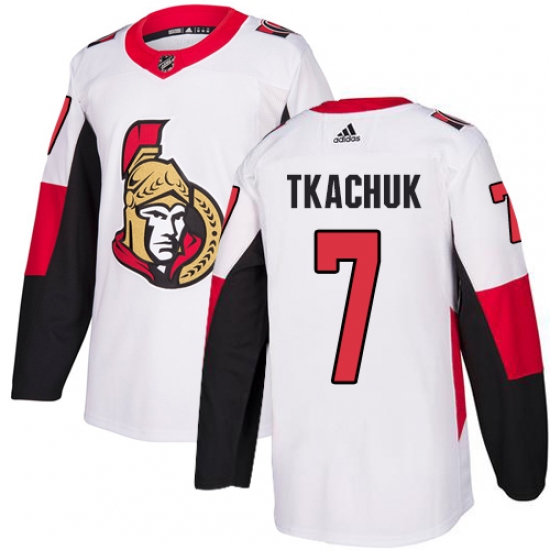 >Youth Adidas Ottawa Senators #7 Brady Tkachuk Authentic White Away NHL Jersey
