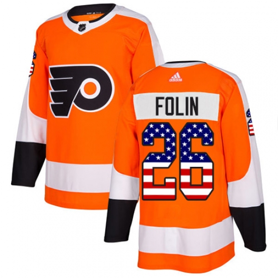Youth Adidas Philadelphia Flyers #26 Christian Folin Authentic Orange USA Flag Fashion NHL Jersey