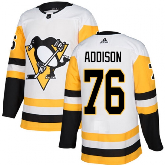 >Youth Adidas Pittsburgh Penguins #76 Calen Addison Authentic White Away NHL Jersey