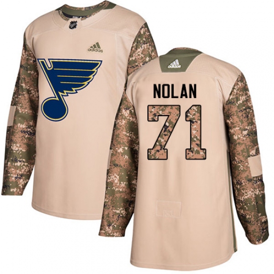 >Youth Adidas St. Louis Blues #71 Jordan Nolan Authentic Camo Veterans Day Practice NHL Jersey
