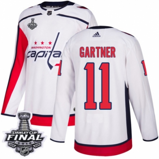 Youth Adidas Washington Capitals #11 Mike Gartner Authentic White Away 2018 Stanley Cup Final NHL Jersey