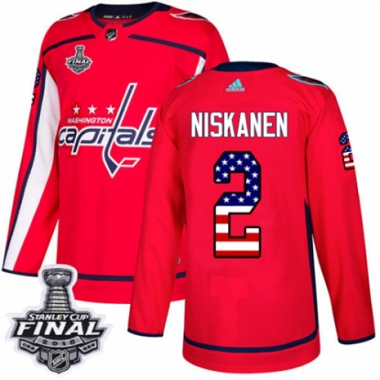 Men's Adidas Washington Capitals #2 Matt Niskanen Authentic Red USA Flag Fashion 2018 Stanley Cup Final Champions NHL Jersey