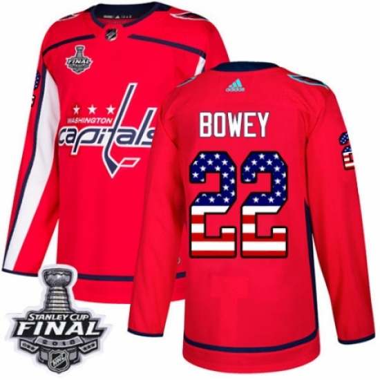 >Youth Adidas Washington Capitals #22 Madison Bowey Authentic Red USA Flag Fashion 2018 Stanley Cup Final NHL Jersey