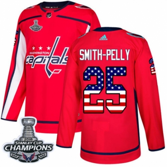 Women's Adidas Washington Capitals #25 Devante Smith-Pelly Authentic Red USA Flag Fashion 2018 Stanley Cup Final Champions NHL Jersey
