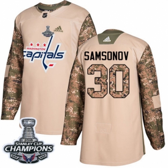 Youth Adidas Washington Capitals #30 Ilya Samsonov Authentic Camo Veterans Day Practice 2018 Stanley Cup Final Champions NHL Jersey