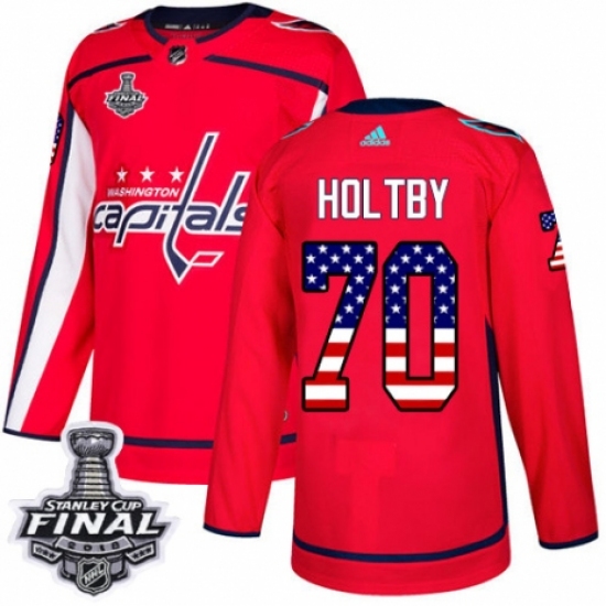 Men's Adidas Washington Capitals #70 Braden Holtby Authentic Red USA Flag Fashion 2018 Stanley Cup Final NHL Jersey