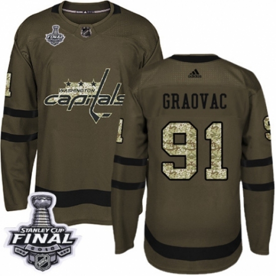 >Youth Adidas Washington Capitals #91 Tyler Graovac Authentic Green Salute to Service 2018 Stanley Cup Final NHL Jersey