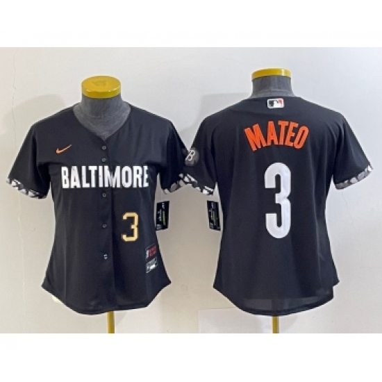 Women's Baltimore Orioles #3 Jorge Mateo Number Black 2023 City Connect Cool Base Stitched Jersey