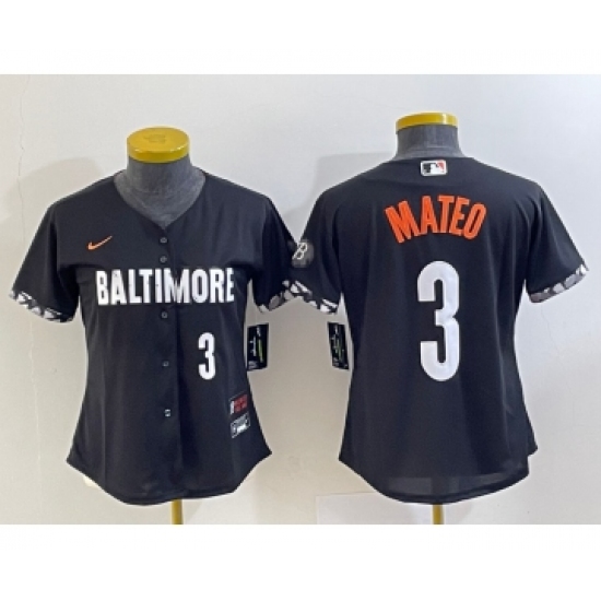 Youth Baltimore Orioles #3 Jorge Mateo Number Black 2023 City Connect Cool Base Stitched Jersey