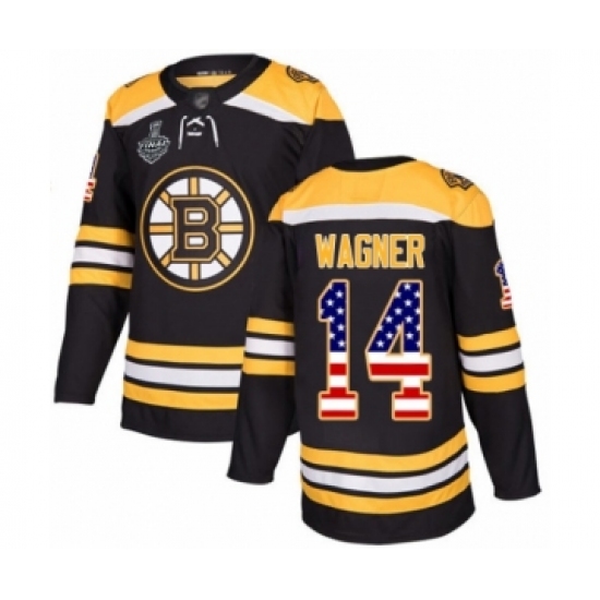>Youth Boston Bruins #14 Chris Wagner Authentic Black USA Flag Fashion 2019 Stanley Cup Final Bound Hockey Jersey