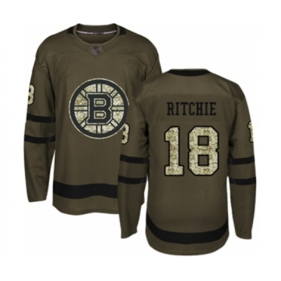>Youth Boston Bruins #18 Brett Ritchie Authentic Green Salute to Service Hockey Jersey