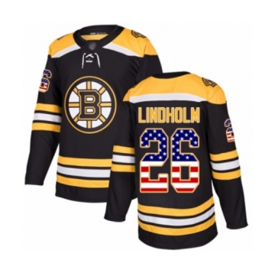 Men's Boston Bruins #26 Par Lindholm Authentic Black USA Flag Fashion Hockey Jersey