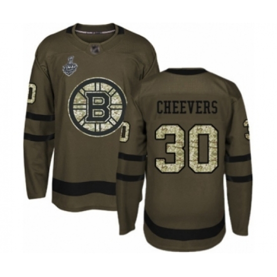 Youth Boston Bruins #30 Gerry Cheevers Authentic Green Salute to Service 2019 Stanley Cup Final Bound Hockey Jersey