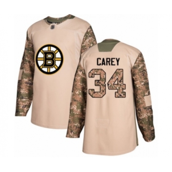 >Youth Boston Bruins #34 Paul Carey Authentic Camo Veterans Day Practice Hockey Jersey