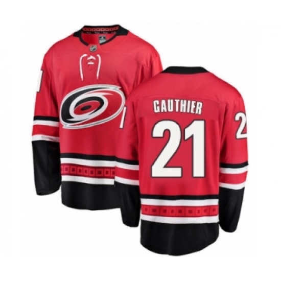 Youth Carolina Hurricanes #21 Julien Gauthier Authentic Red Home Fanatics Branded Breakaway NHL Jersey