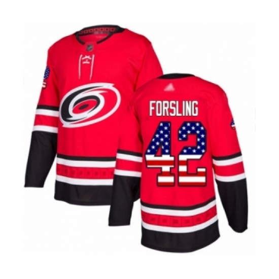 Youth Carolina Hurricanes #42 Gustav Forsling Authentic Red USA Flag Fashion Hockey Jersey