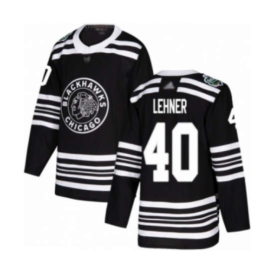 >Youth Chicago Blackhawks #40 Robin Lehner Authentic Black 2019 Winter Classic Hockey Jersey