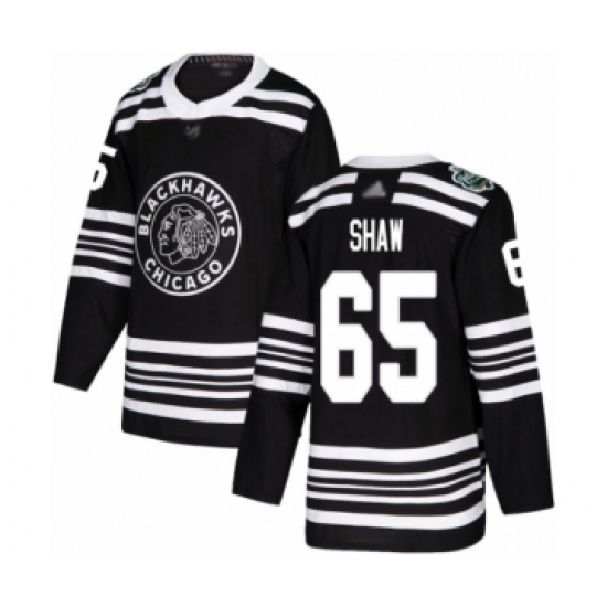 >Youth Chicago Blackhawks #65 Andrew Shaw Authentic Black 2019 Winter Classic Hockey Jersey