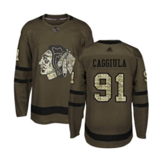 Youth Chicago Blackhawks #91 Drake Caggiula Authentic Green Salute to Service Hockey Jersey