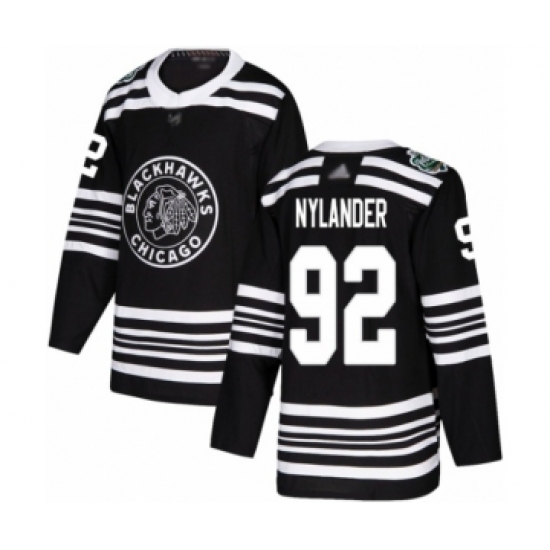 >Youth Chicago Blackhawks #92 Alexander Nylander Authentic Black 2019 Winter Classic Hockey Jersey