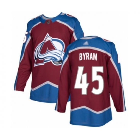 >Youth Colorado Avalanche #45 Bowen Byram Authentic Burgundy Red Home Hockey Jersey