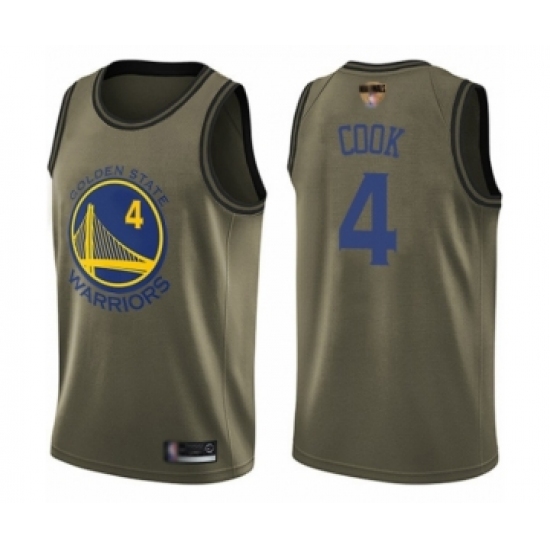 >Youth Golden State Warriors #4 Quinn Cook Swingman Green Salute to Service Basketball 2019 Basketball Finals Bound Jersey