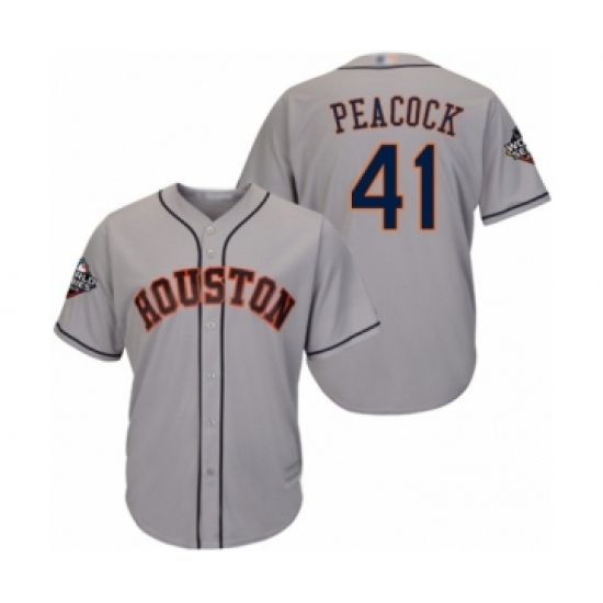 >Youth Houston Astros #41 Brad Peacock Authentic Grey Road Cool Base 2019 World Series Bound Baseball Jersey