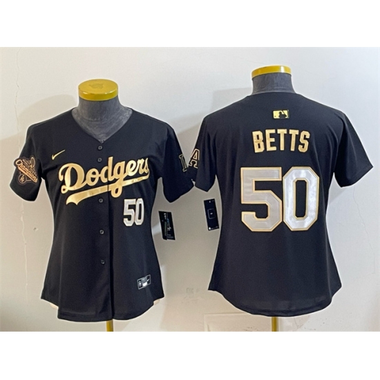 Women's Los Angeles Dodgers #50 Mookie Betts Mexico Black Cool Base Stitched Jersey