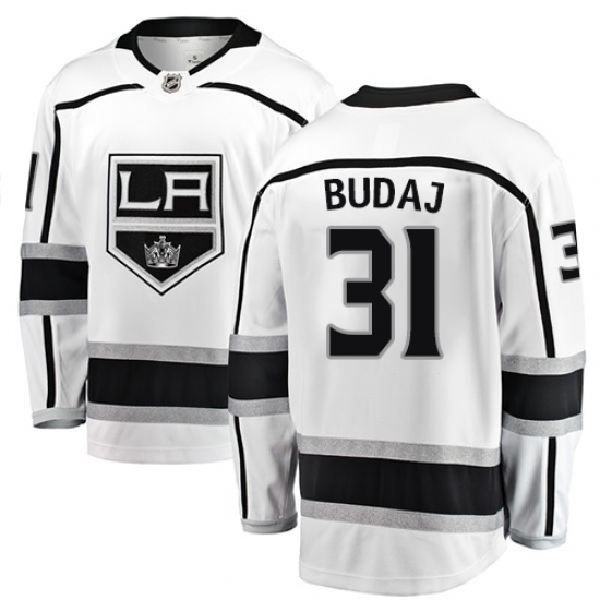 >Youth Los Angeles Kings #31 Peter Budaj Authentic White Away Fanatics Branded Breakaway NHL Jersey