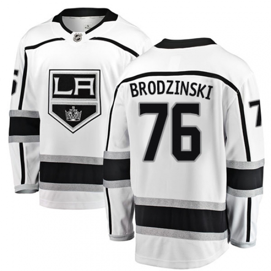 Youth Los Angeles Kings #76 Jonny Brodzinski Authentic White Away Fanatics Branded Breakaway NHL Jersey