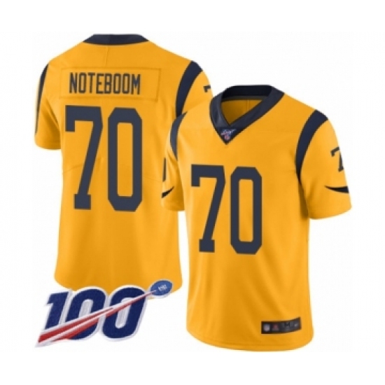 >Youth Los Angeles Rams #70 Joseph Noteboom Limited Gold Rush Vapor Untouchable 100th Season Football Jersey