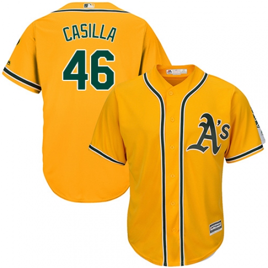Home>MLB>Oakland Athletics>Santiago Casilla>Youth Majestic Oakland Athletics #46 Santiago Casilla Replica Gold Alternate 2 Cool Base MLB Jersey