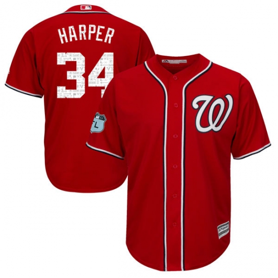 Home>MLB>Washington Nationals>Bryce Harper>Youth Majestic Washington Nationals #34 Bryce Harper Authentic Scarlet 2017 Spring Training Cool Base MLB Jersey