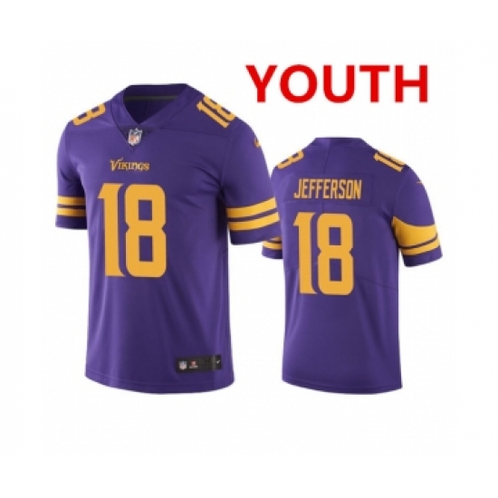Youth Minnesota Vikings #18 Justin Jefferson Purple Color Rush Limited Stitched Jersey