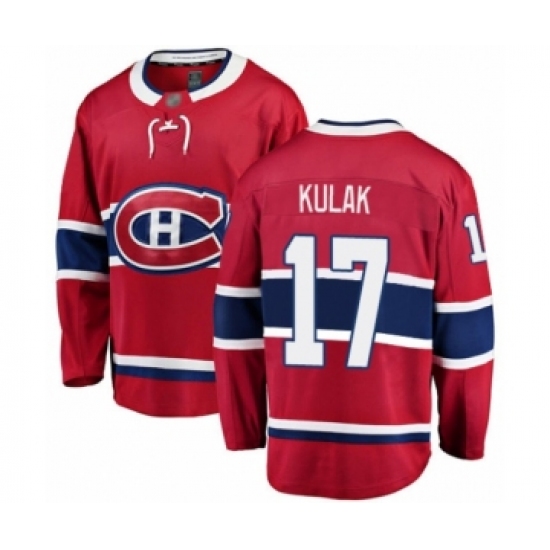 Men's Montreal Canadiens #17 Brett Kulak Authentic Red Home Fanatics Branded Breakaway Hockey Jersey