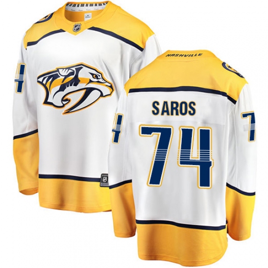 Home>NHL>Nashville Predators>Juuse Saros>Youth Nashville Predators #74 Juuse Saros Fanatics Branded White Away Breakaway NHL Jersey