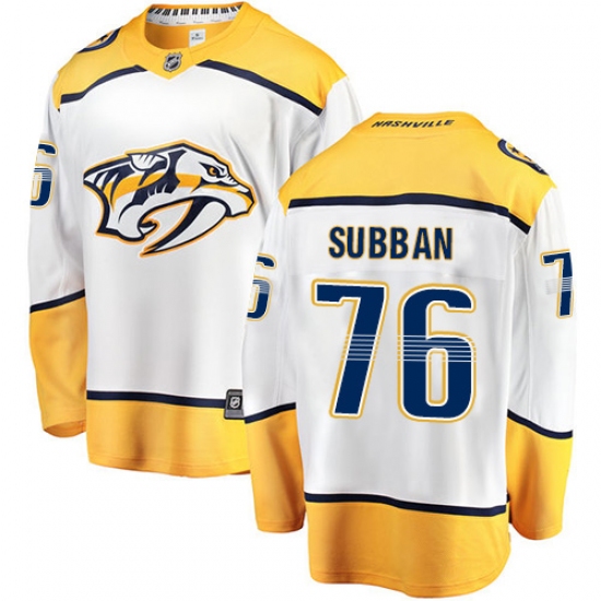 Youth Nashville Predators #76 P.K Subban Fanatics Branded White Away Breakaway NHL Jersey